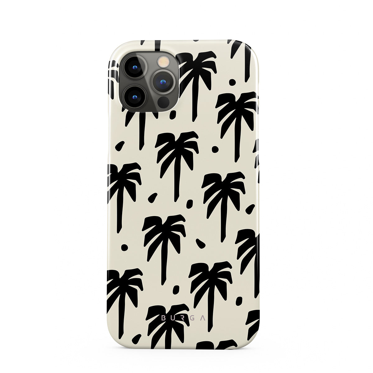 A peaceful haven right at your fingertips. The design contrasts black palm silhouettes against a calming light backdrop. Our Paraíso iPhone 12 Pro Max phone case is your passport to an everlasting tropical escape.