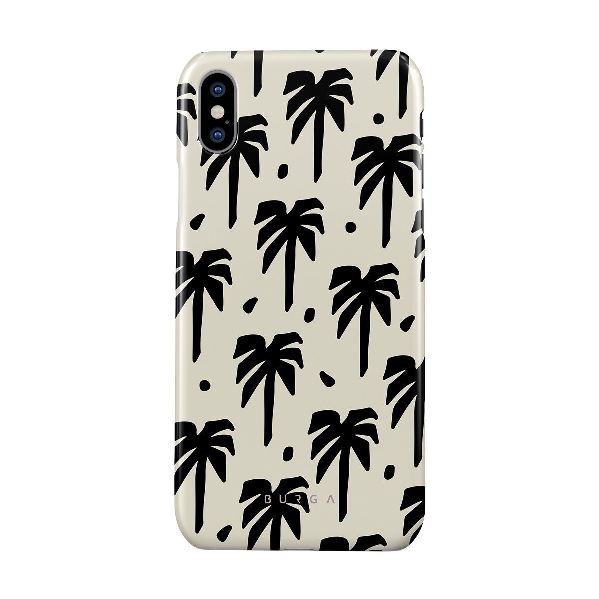 A peaceful haven right at your fingertips. The design contrasts black palm silhouettes against a calming light backdrop. Our Paraíso iPhone X / XS phone case is your passport to an everlasting tropical escape.