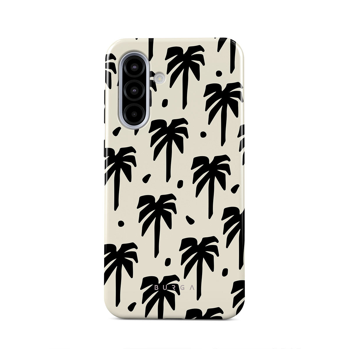 A peaceful haven right at your fingertips. The design contrasts black palm silhouettes against a calming light backdrop. Our Paraíso Samsung Galaxy A56 5G phone case is your passport to an everlasting tropical escape.