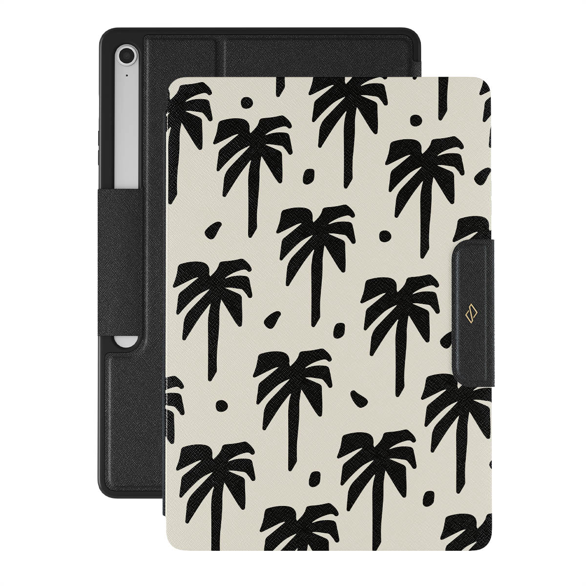 A peaceful haven right at your fingertips. The design contrasts black palm silhouettes against a calming light backdrop. Our Paraíso Samsung Galaxy Tab S10+ FE folio case is your passport to an everlasting tropical escape.
