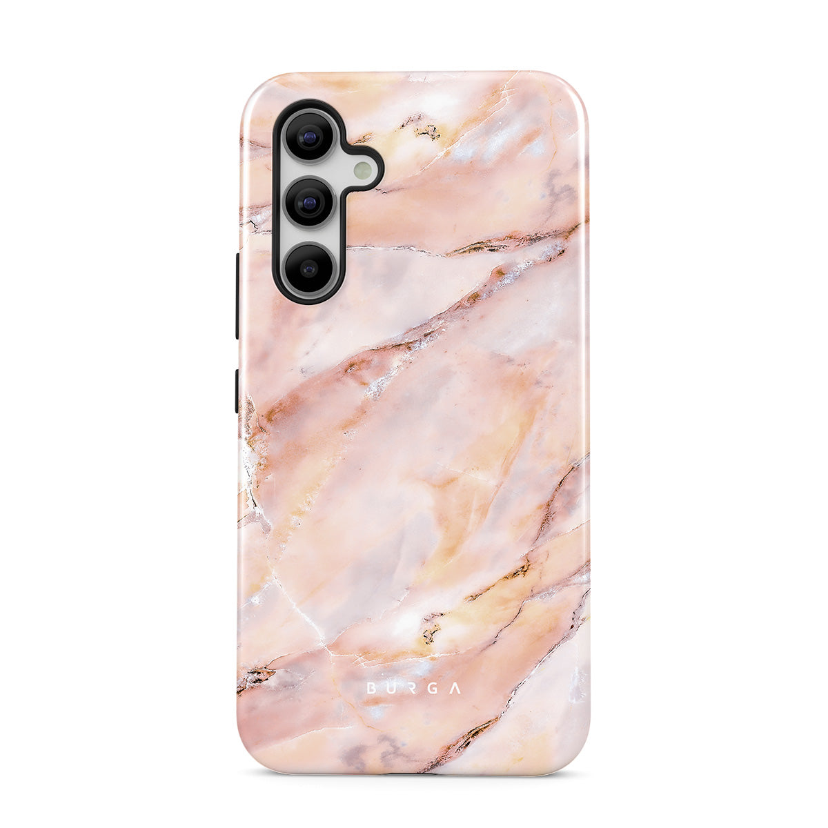 Morning Sunshine Samsung Galaxy A55 phone case features a timeless pastel marble design, inspired by the beauty of a sunrise. Soft hues of pink and orange will add warmth to your style. Keep your phone protected with sunshine in your pocket.