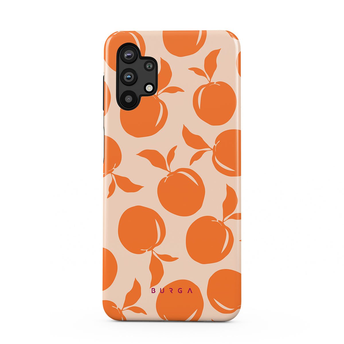 Picture a sun-soaked grove where ripe, juicy peaches glow with a radiant orange vibrance, their succulent aroma filling the warm air. Our Peach Fuzz design infuses your Samsung Galaxy A32 5G phone case with a lively, sun-kissed charm, perfectly capturing the essence of carefree, joyful summer days.