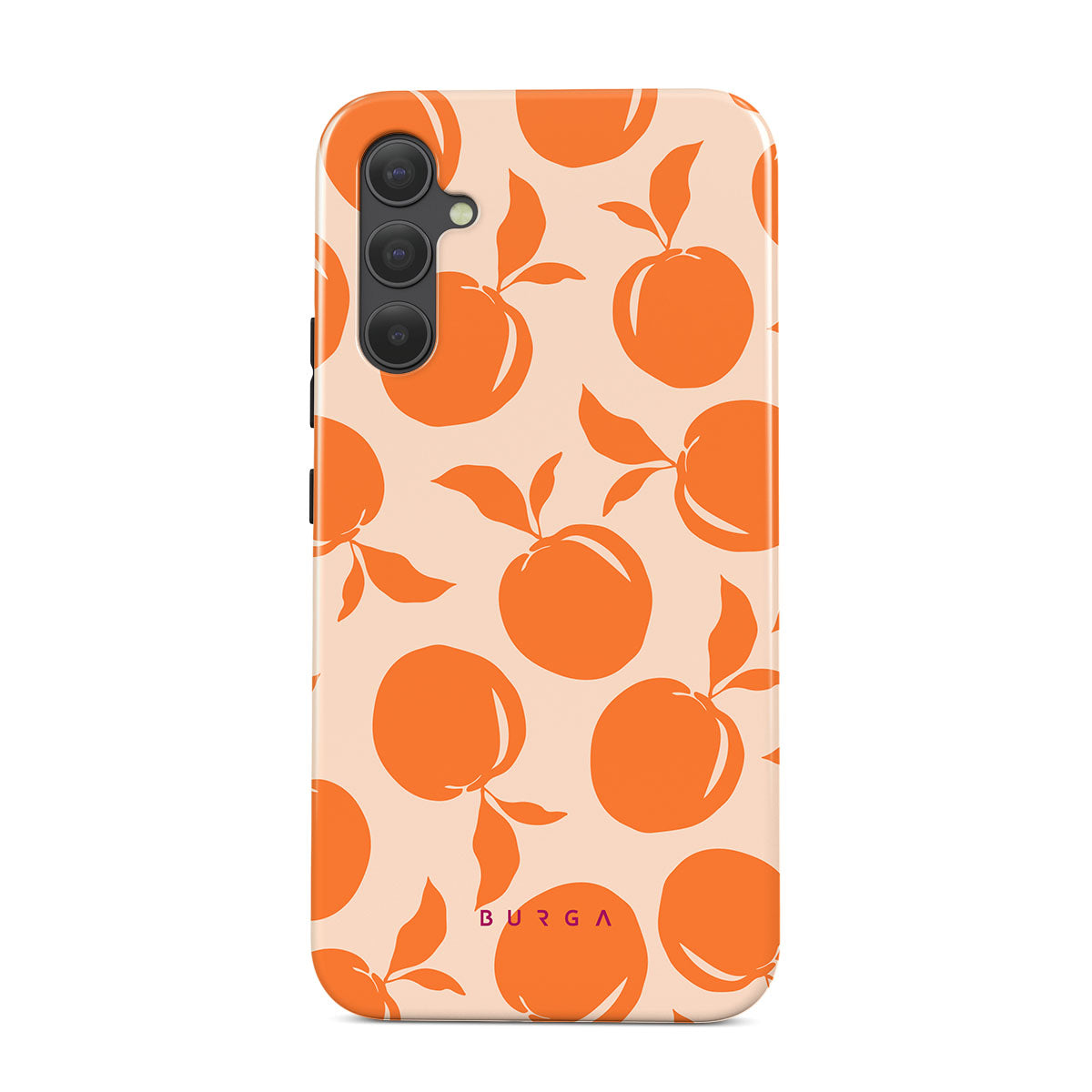 Picture a sun-soaked grove where ripe, juicy peaches glow with a radiant orange vibrance, their succulent aroma filling the warm air. Our Peach Fuzz design infuses your Samsung Galaxy A34 phone case with a lively, sun-kissed charm, perfectly capturing the essence of carefree, joyful summer days.