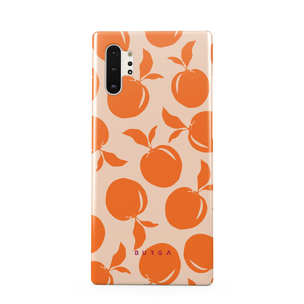 Picture a sun-soaked grove where ripe, juicy peaches glow with a radiant orange vibrance, their succulent aroma filling the warm air. Our Peach Fuzz design infuses your Samsung Galaxy Note 10 Plus phone case with a lively, sun-kissed charm, perfectly capturing the essence of carefree, joyful summer days.