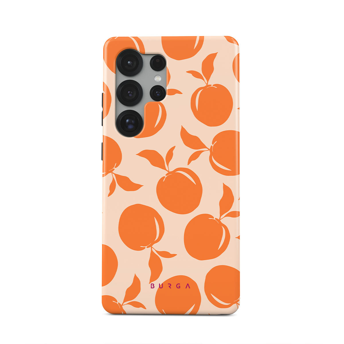 Picture a sun-soaked grove where ripe, juicy peaches glow with a radiant orange vibrance, their succulent aroma filling the warm air. Our Peach Fuzz design infuses your Samsung Galaxy S25 Ultra phone case with a lively, sun-kissed charm, perfectly capturing the essence of carefree, joyful summer days.