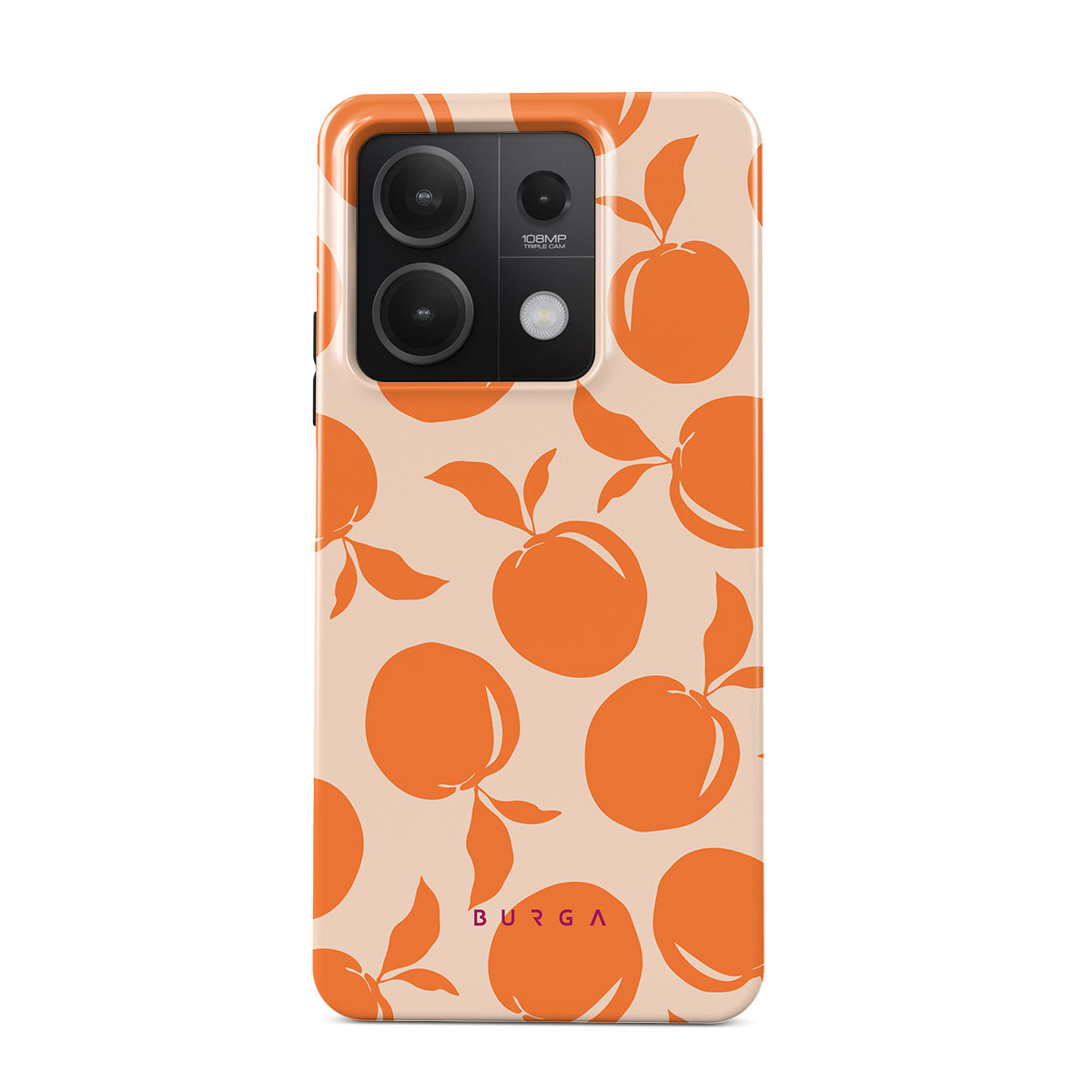 Picture a sun-soaked grove where ripe, juicy peaches glow with a radiant orange vibrance, their succulent aroma filling the warm air. Our Peach Fuzz design infuses your Xiaomi Redmi Note 13 5G phone case with a lively, sun-kissed charm, perfectly capturing the essence of carefree, joyful summer days.