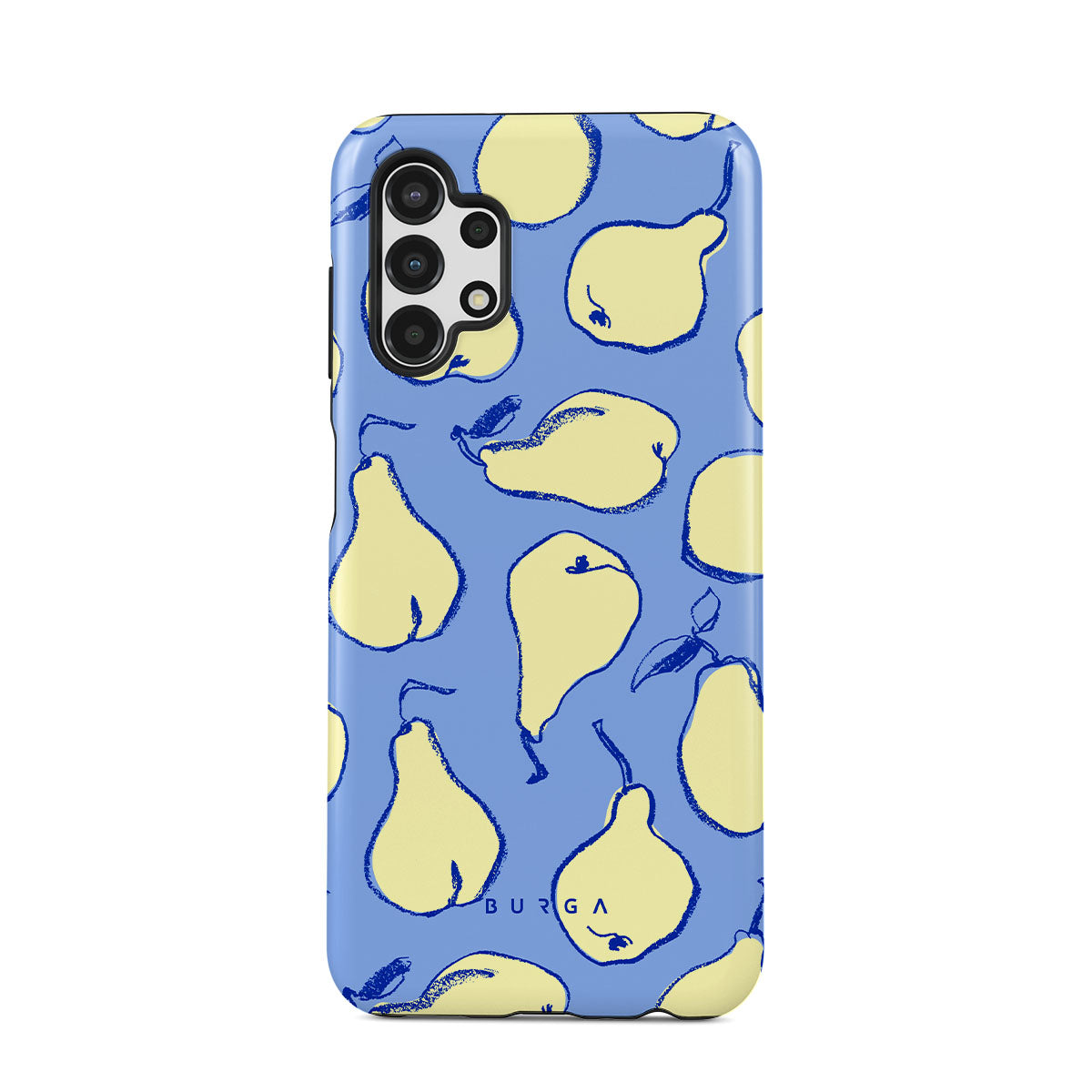 Step into a playful paradise with Pear Crush. Each pear is outlined with a lively, hand-drawn charm. This design brings a playful vibe to your Samsung Galaxy A13 4G phone case, perfect for those who love to embrace the lighter, more joyful side of life.