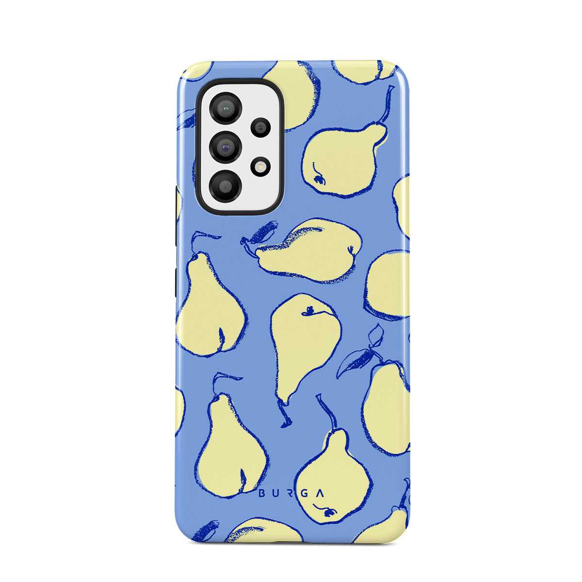 Step into a playful paradise with Pear Crush. Each pear is outlined with a lively, hand-drawn charm. This design brings a playful vibe to your Samsung Galaxy A33 phone case, perfect for those who love to embrace the lighter, more joyful side of life.
