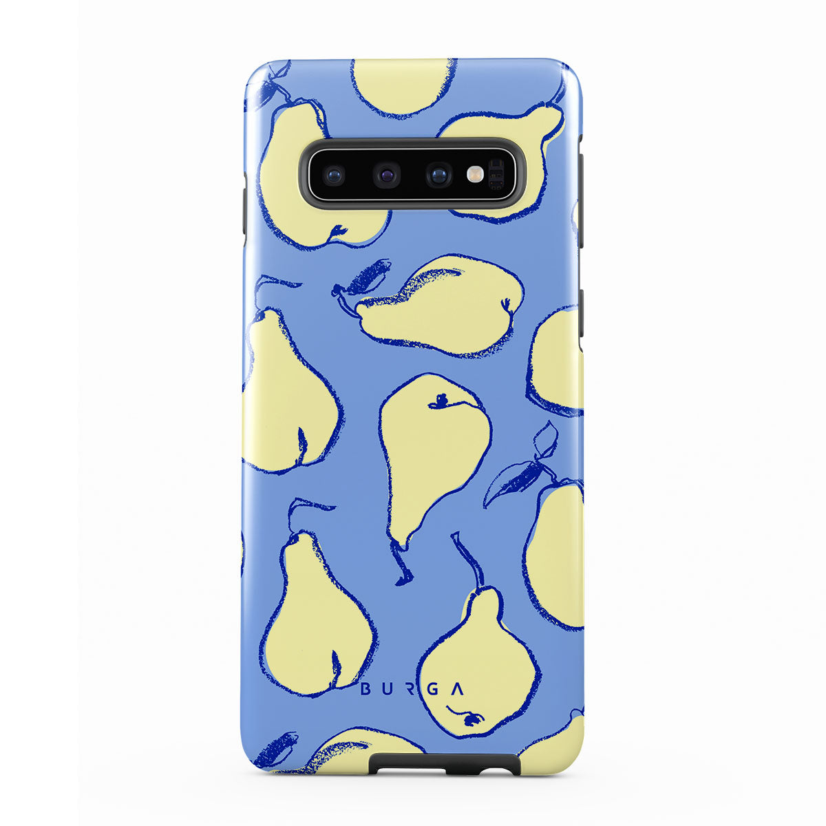 Step into a playful paradise with Pear Crush. Each pear is outlined with a lively, hand-drawn charm. This design brings a playful vibe to your Samsung Galaxy S10 4G phone case, perfect for those who love to embrace the lighter, more joyful side of life.