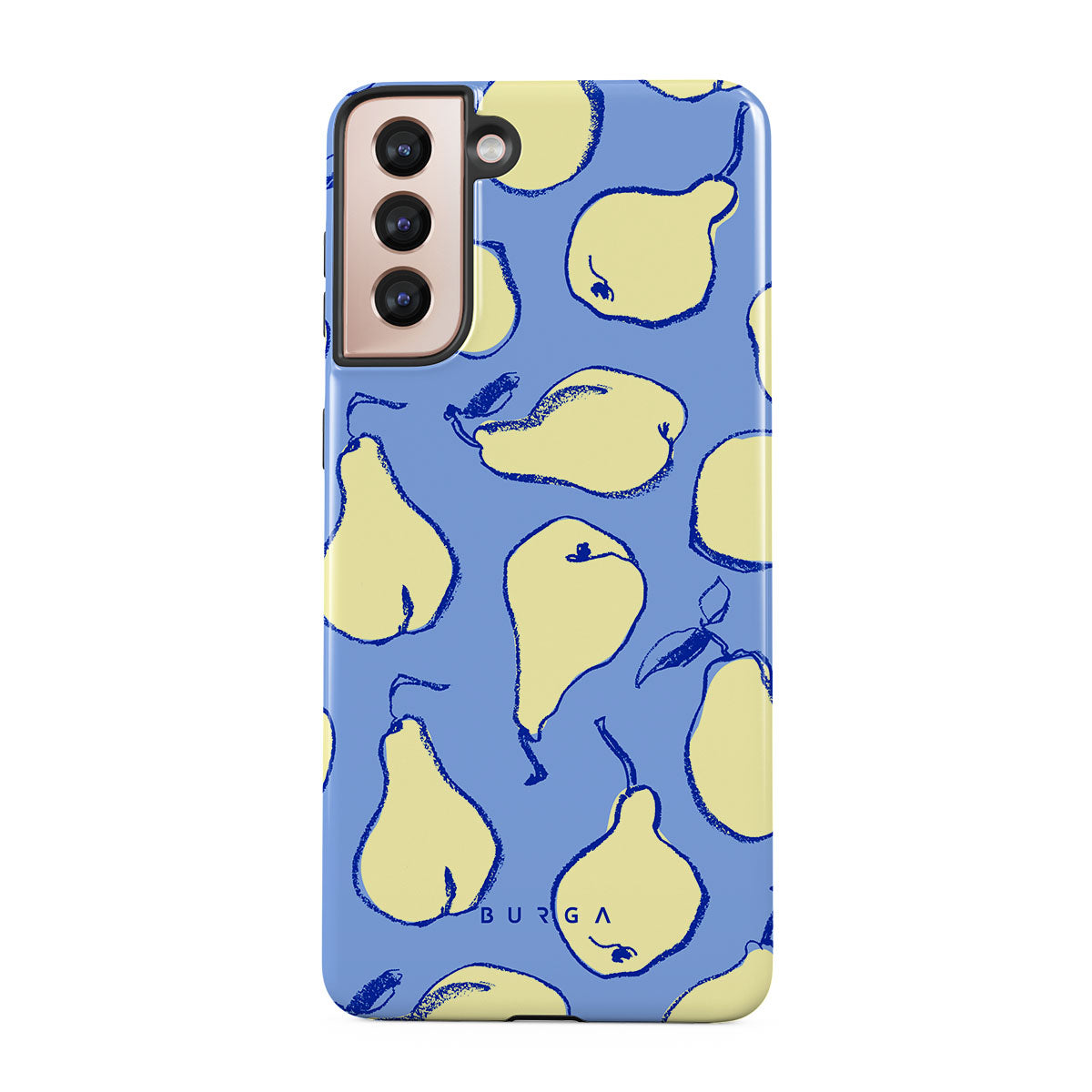 Step into a playful paradise with Pear Crush. Each pear is outlined with a lively, hand-drawn charm. This design brings a playful vibe to your Samsung Galaxy S21 Plus phone case, perfect for those who love to embrace the lighter, more joyful side of life.