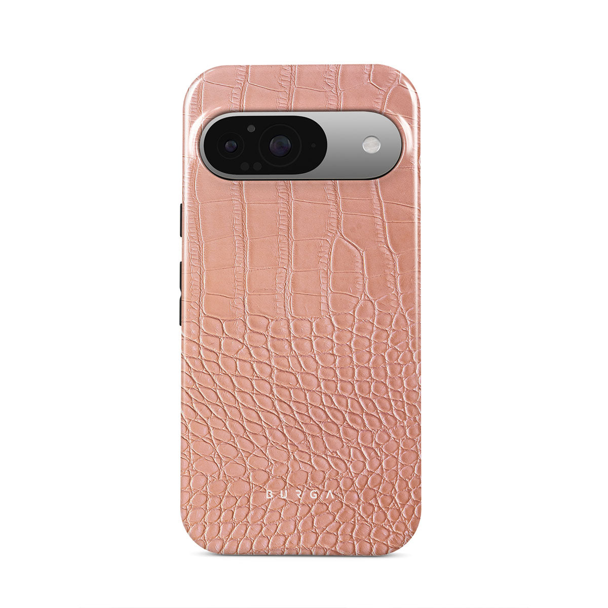 Our Pink Croco Google Pixel 9 phone case features a classic crocodile design reimagined and showcased in a soft coral shade. The new take on the dangerous animal print will add a touch of softness to your style while simultaneously offering heavy-duty protection to your device.