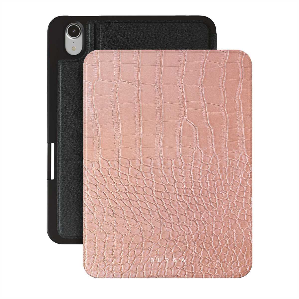 Our Pink Croco-it is a printed pattern * iPad Mini 8.3 (A17 Pro/6th Gen) 2021 folio case features a classic crocodile design reimagined and showcased in a soft coral shade. The new take on the dangerous animal print will add a touch of softness to your style while simultaneously offering heavy-duty protection to your device.