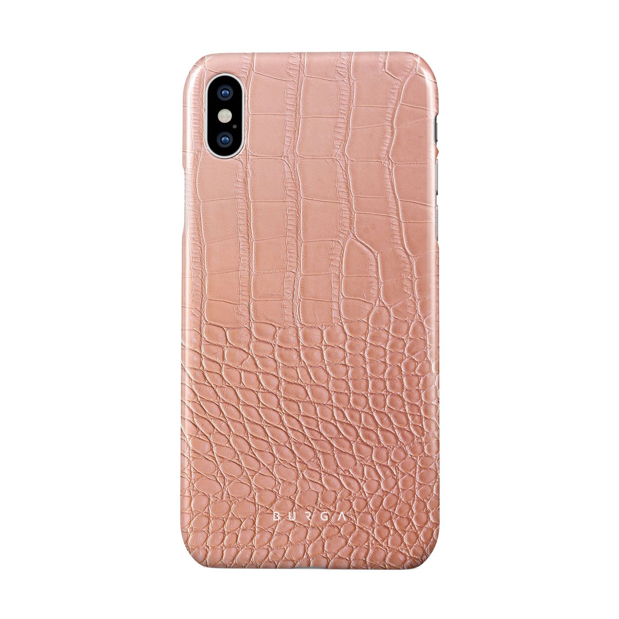 Our Pink Croco iPhone XS Max phone case features a classic crocodile design reimagined and showcased in a soft coral shade. The new take on the dangerous animal print will add a touch of softness to your style while simultaneously offering heavy-duty protection to your device.