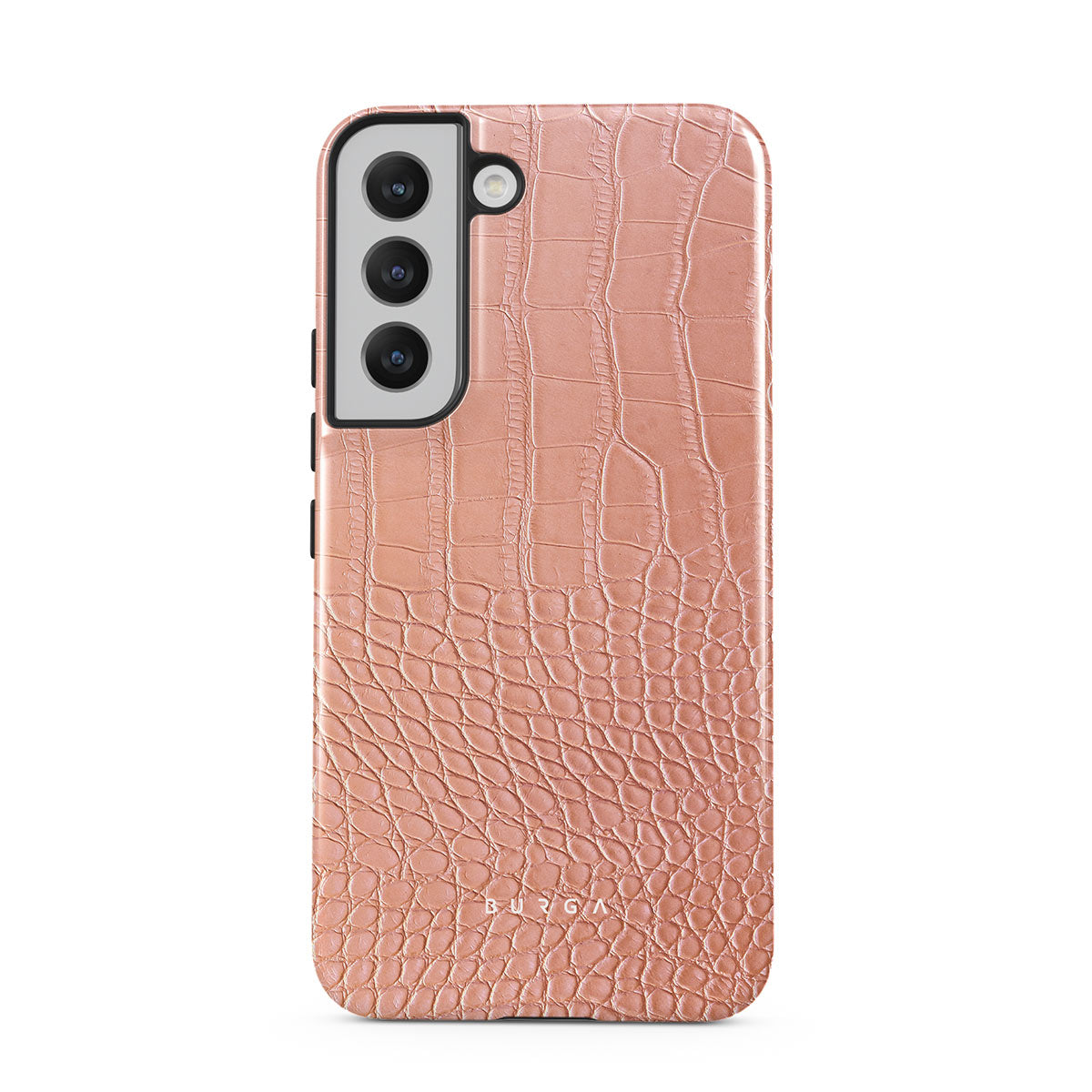 Our Pink Croco Samsung Galaxy S22 Plus phone case features a classic crocodile design reimagined and showcased in a soft coral shade. The new take on the dangerous animal print will add a touch of softness to your style while simultaneously offering heavy-duty protection to your device.