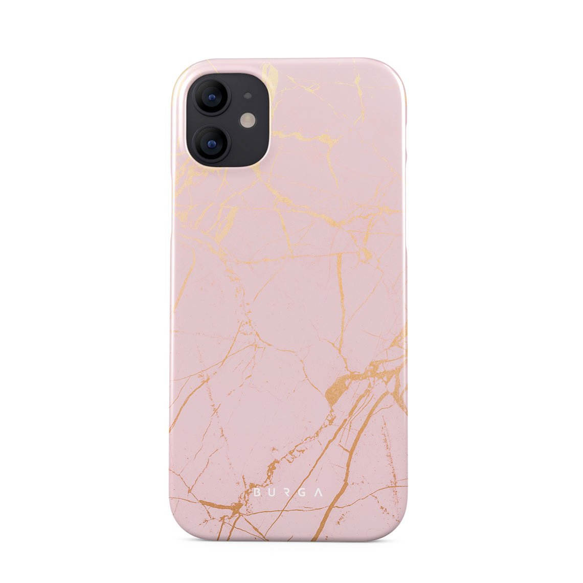 Growing under the beautiful sky and warmed by the rays of the sunshine, when ripped, peach offers you sweetness and softness. This is why our Peachy Gold iPhone 12 Mini phone case design adds a bit of golden color to the pink marble dream making a protective phone case both pretty and durable.