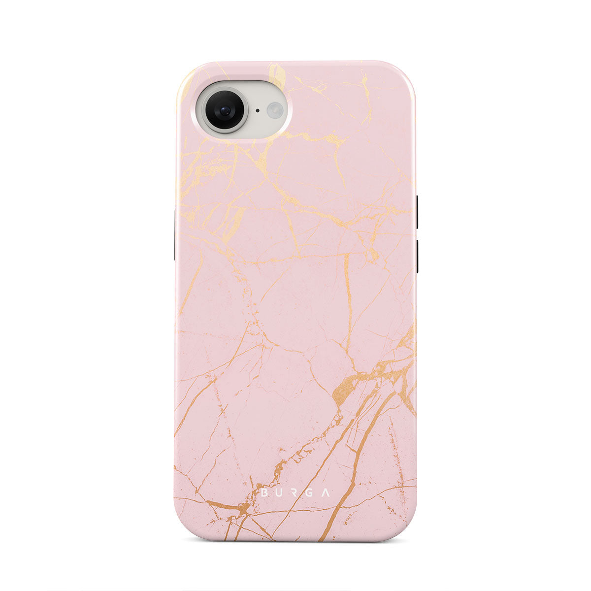 Growing under the beautiful sky and warmed by the rays of the sunshine, when ripped, peach offers you sweetness and softness. This is why our Peachy Gold iPhone 16e phone case design adds a bit of golden color to the pink marble dream making a protective phone case both pretty and durable.