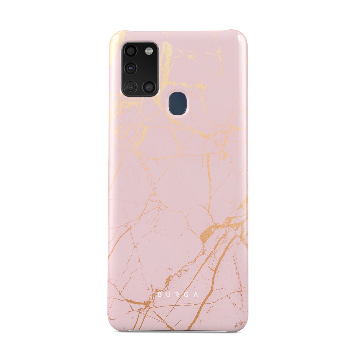 Growing under the beautiful sky and warmed by the rays of the sunshine, when ripped, peach offers you sweetness and softness. This is why our Peachy Gold Samsung Galaxy A21s 4G phone case design adds a bit of golden color to the pink marble dream making a protective phone case both pretty and durable.
