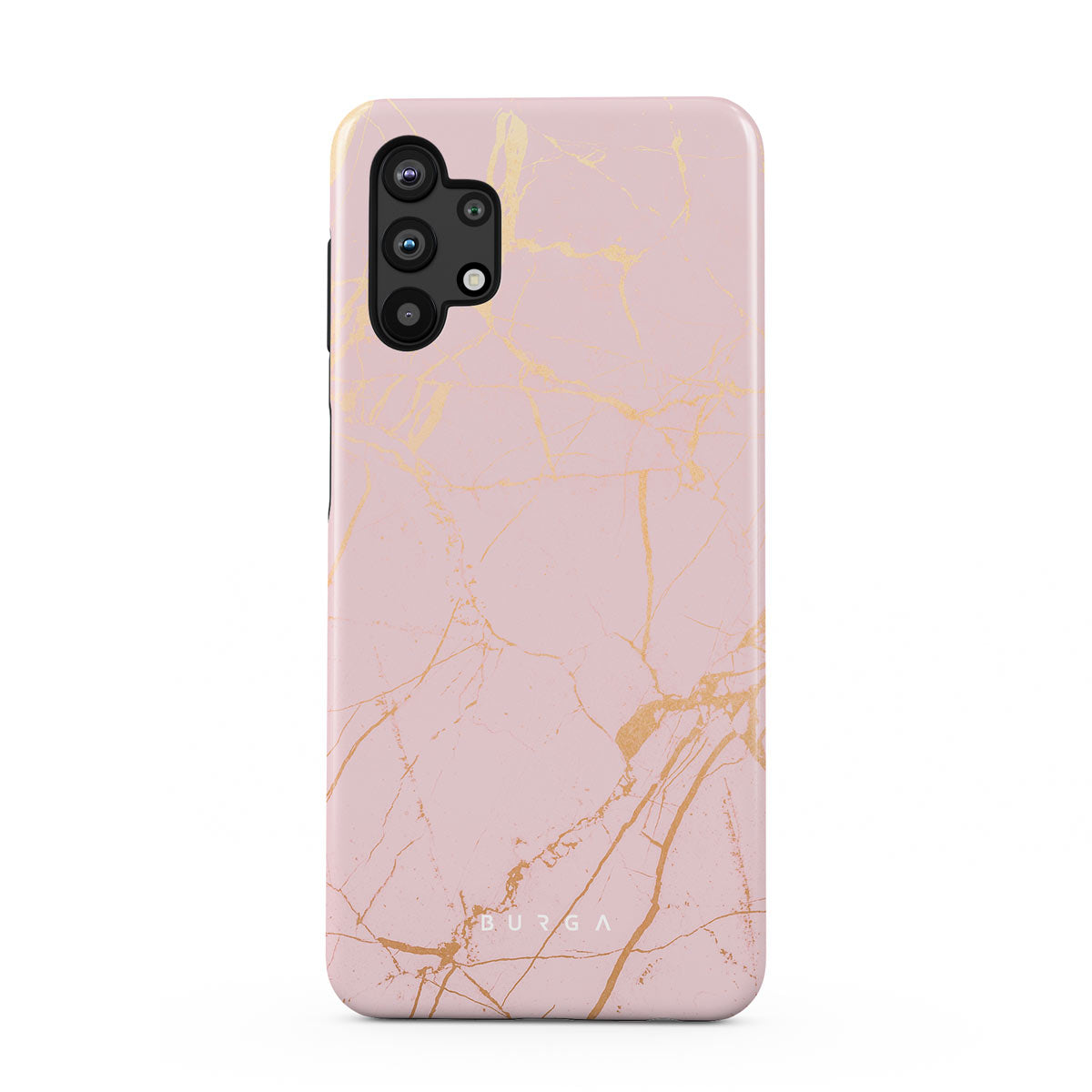 Growing under the beautiful sky and warmed by the rays of the sunshine, when ripped, peach offers you sweetness and softness. This is why our Peachy Gold Samsung Galaxy A32 5G phone case design adds a bit of golden color to the pink marble dream making a protective phone case both pretty and durable.