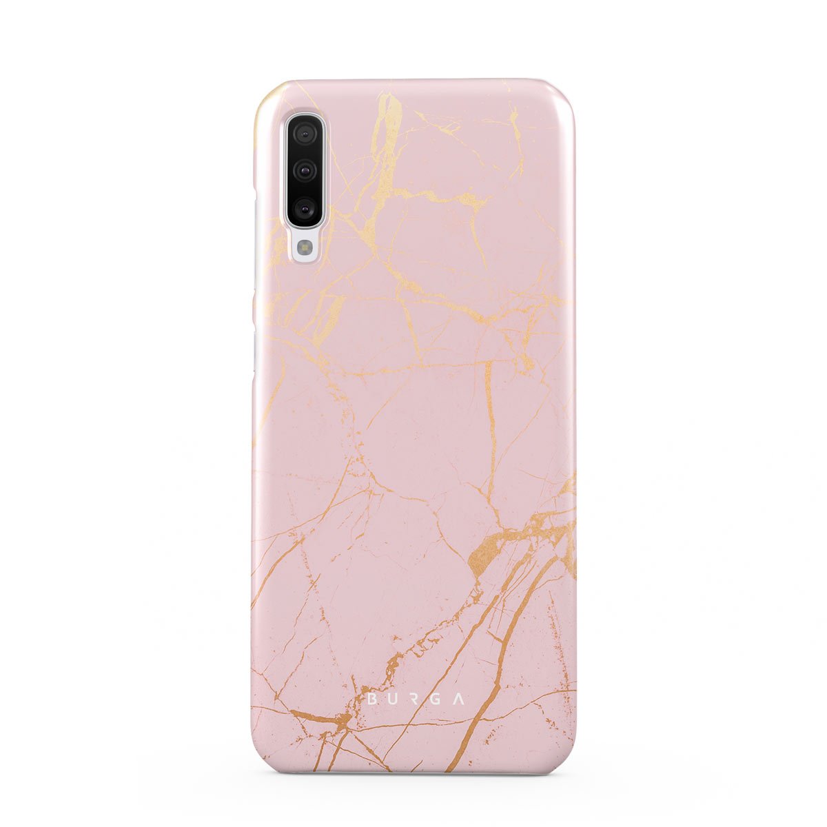 Growing under the beautiful sky and warmed by the rays of the sunshine, when ripped, peach offers you sweetness and softness. This is why our Peachy Gold Samsung Galaxy A70 phone case design adds a bit of golden color to the pink marble dream making a protective phone case both pretty and durable.