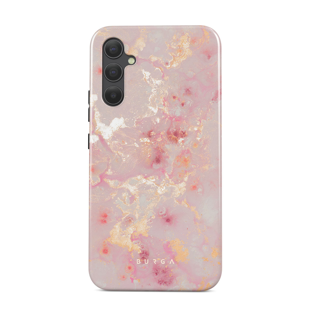 The sun is shining and creates a golden reflection in the corals. Take this scenery with yourself with our pretty and pink Golden Coral Samsung Galaxy A34 phone case. Add protection to your phone with a unique pink marble pattern that is guaranteed to catch everyone's eye.