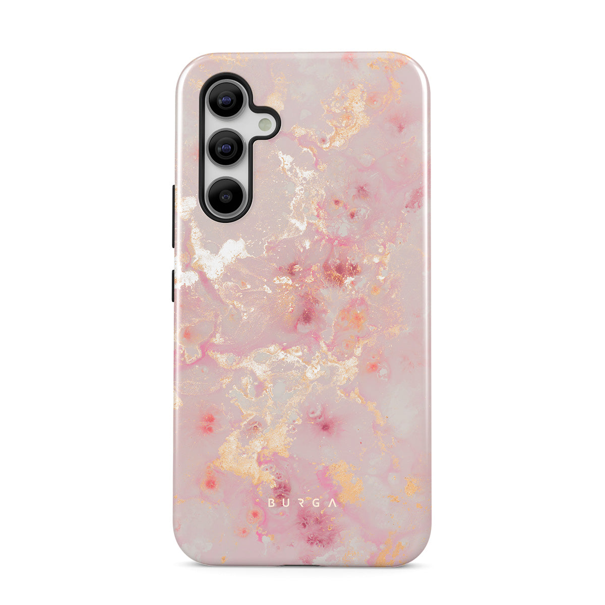 The sun is shining and creates a golden reflection in the corals. Take this scenery with yourself with our pretty and pink Golden Coral Samsung Galaxy A55 phone case. Add protection to your phone with a unique pink marble pattern that is guaranteed to catch everyone's eye.