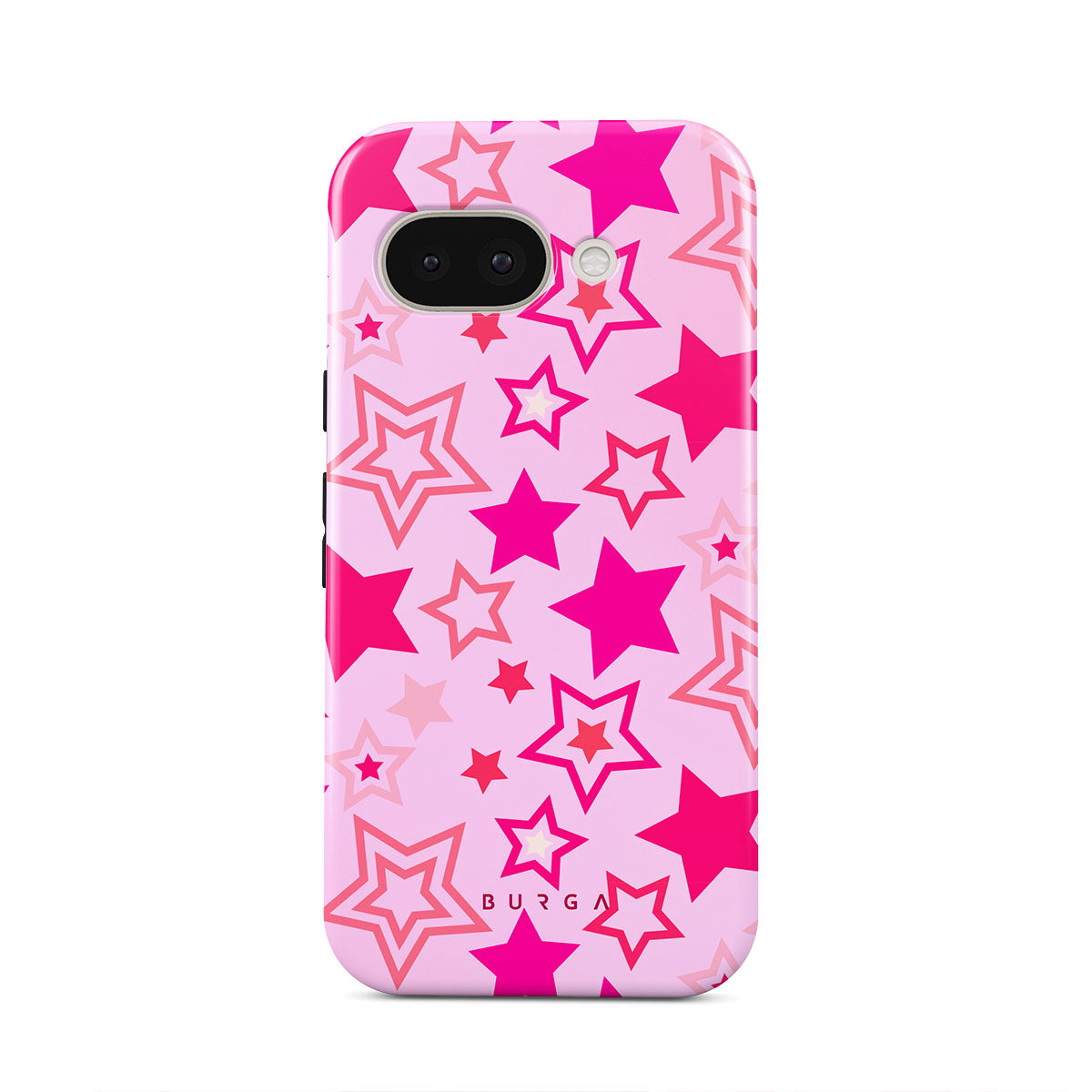 Buckle up for a starry ride, and let's twirl under the Plastic Sky. Neon stars shimmering across a cheeky rose-tinted galaxy create a playful space-disco atmosphere. Be the center of the universe with our Plastic Sky Google Pixel 9a phone case!