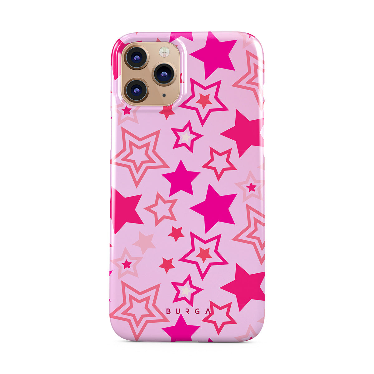 Buckle up for a starry ride, and let's twirl under the Plastic Sky. Neon stars shimmering across a cheeky rose-tinted galaxy create a playful space-disco atmosphere. Be the center of the universe with our Plastic Sky iPhone 11 Pro Max phone case!
