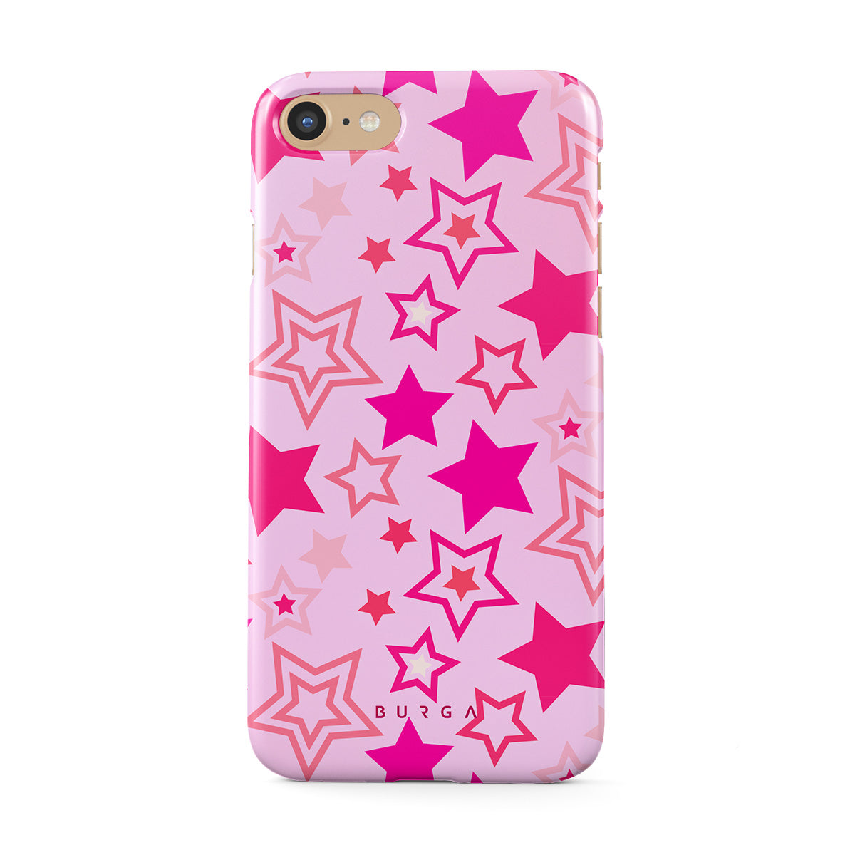 Buckle up for a starry ride, and let's twirl under the Plastic Sky. Neon stars shimmering across a cheeky rose-tinted galaxy create a playful space-disco atmosphere. Be the center of the universe with our Plastic Sky iPhone SE (2020) phone case!