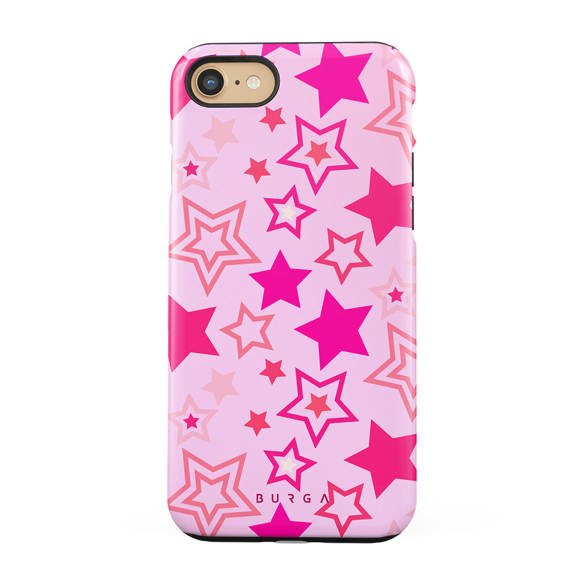 Buckle up for a starry ride, and let's twirl under the Plastic Sky. Neon stars shimmering across a cheeky rose-tinted galaxy create a playful space-disco atmosphere. Be the center of the universe with our Plastic Sky iPhone SE (2022) phone case!