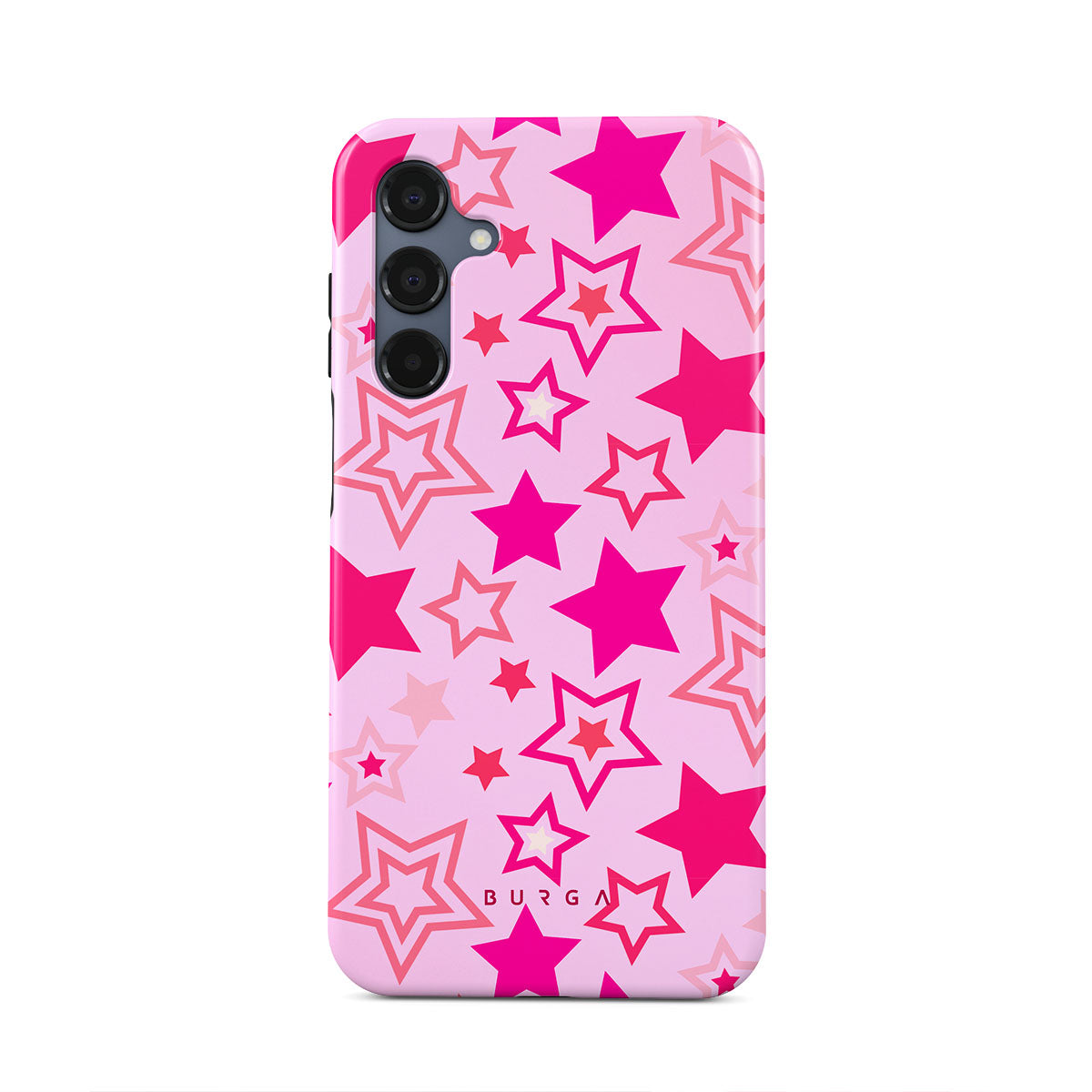 Buckle up for a starry ride, and let's twirl under the Plastic Sky. Neon stars shimmering across a cheeky rose-tinted galaxy create a playful space-disco atmosphere. Be the center of the universe with our Plastic Sky Samsung Galaxy A16 phone case!