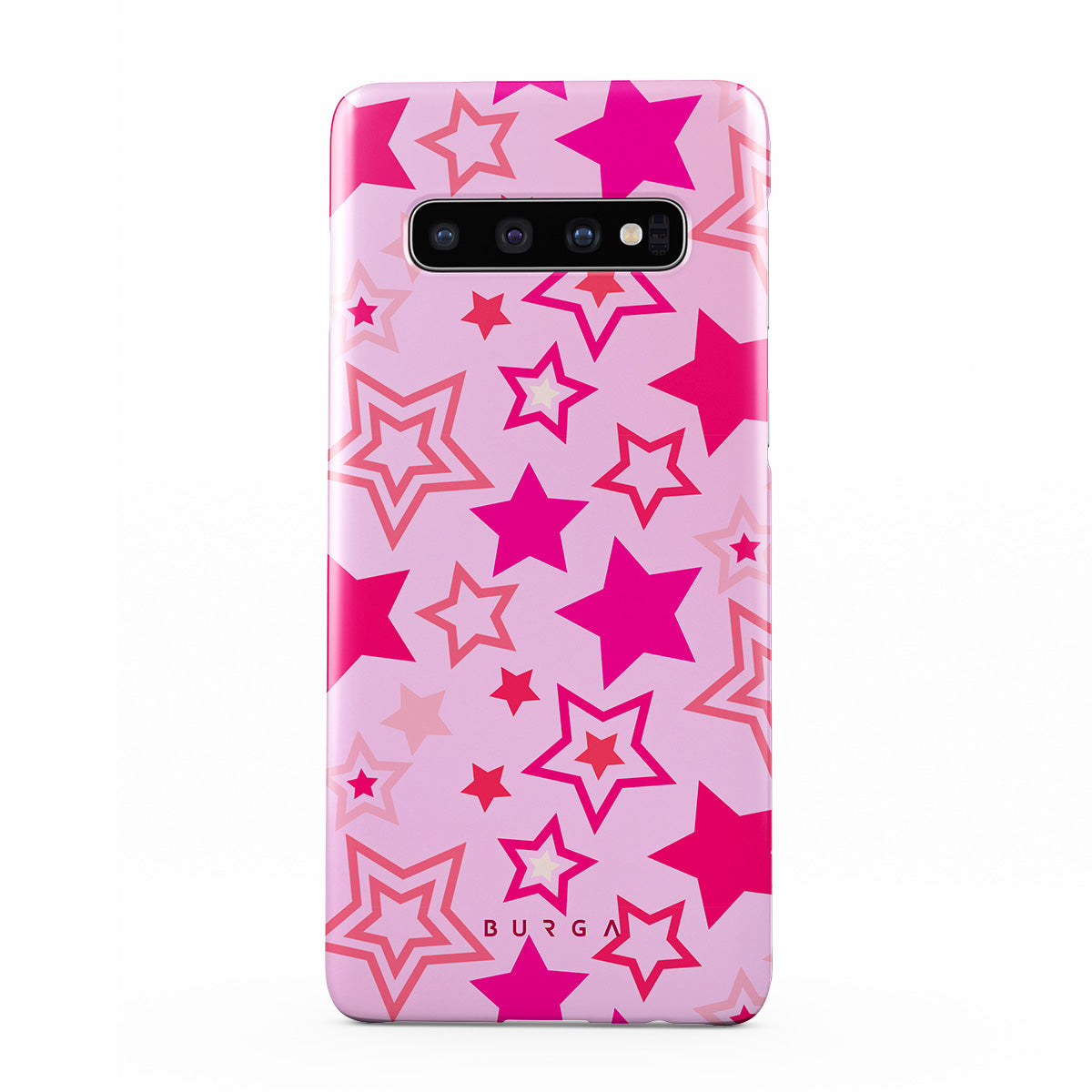 Buckle up for a starry ride, and let's twirl under the Plastic Sky. Neon stars shimmering across a cheeky rose-tinted galaxy create a playful space-disco atmosphere. Be the center of the universe with our Plastic Sky Samsung Galaxy S10 Plus phone case!
