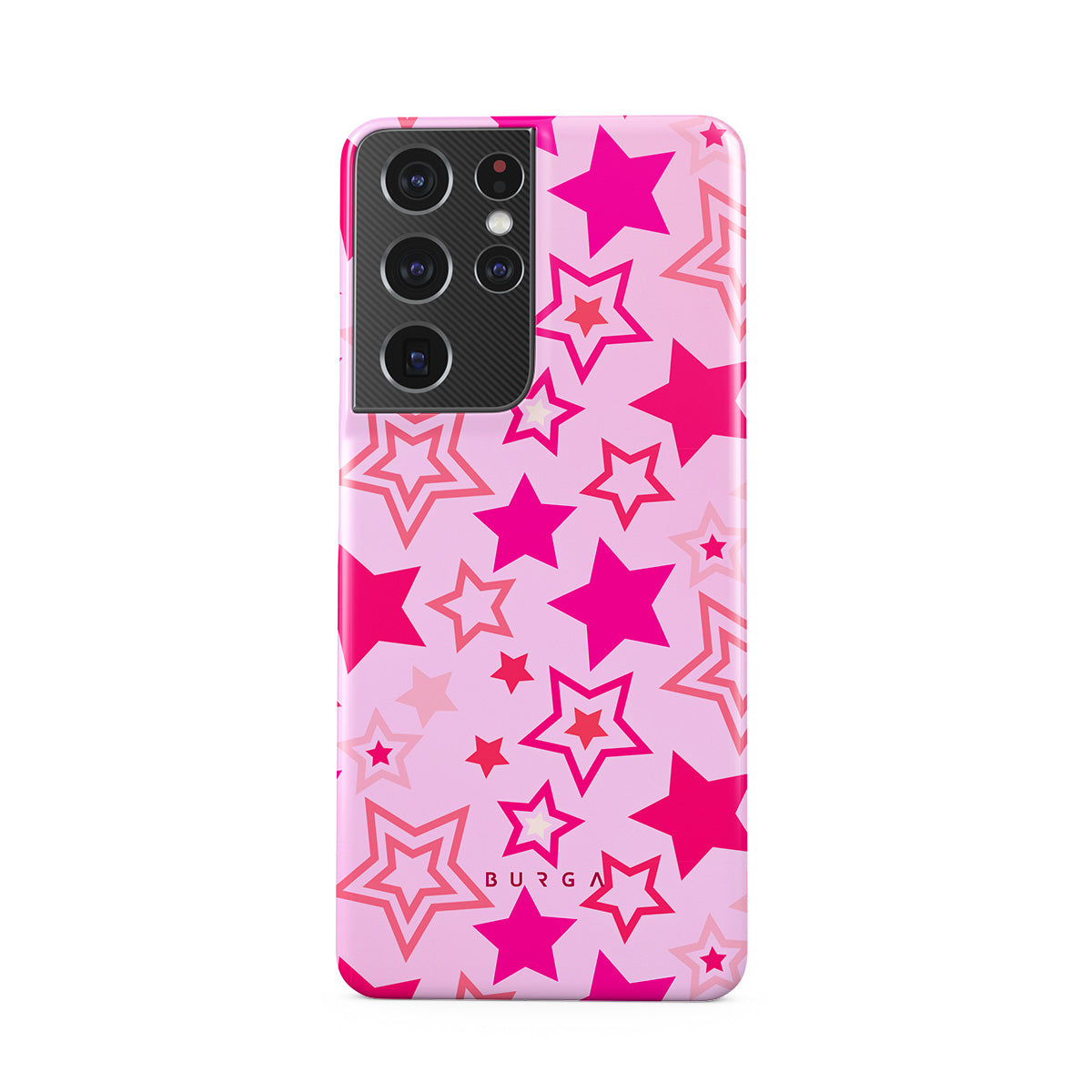 Buckle up for a starry ride, and let's twirl under the Plastic Sky. Neon stars shimmering across a cheeky rose-tinted galaxy create a playful space-disco atmosphere. Be the center of the universe with our Plastic Sky Samsung Galaxy S21 Ultra phone case!