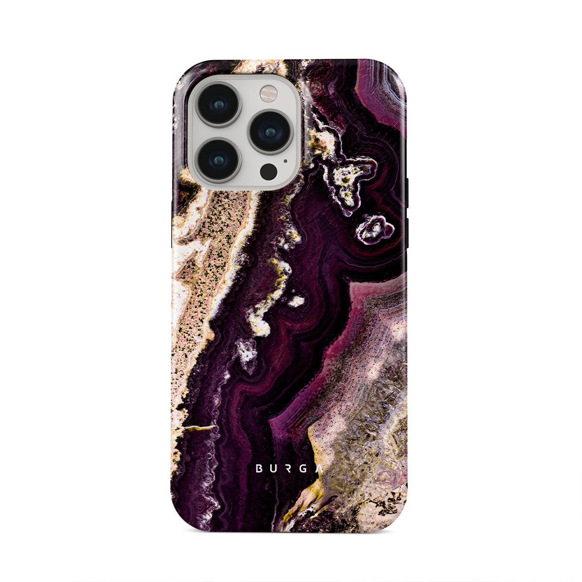 Marble meets geode look in our durable Purple Skies iPhone 14 Pro phone case. You can rest sure that our hard-shell purple marble phone case will protect your device from any unexpected falls while adding elegance and luxury to your style.