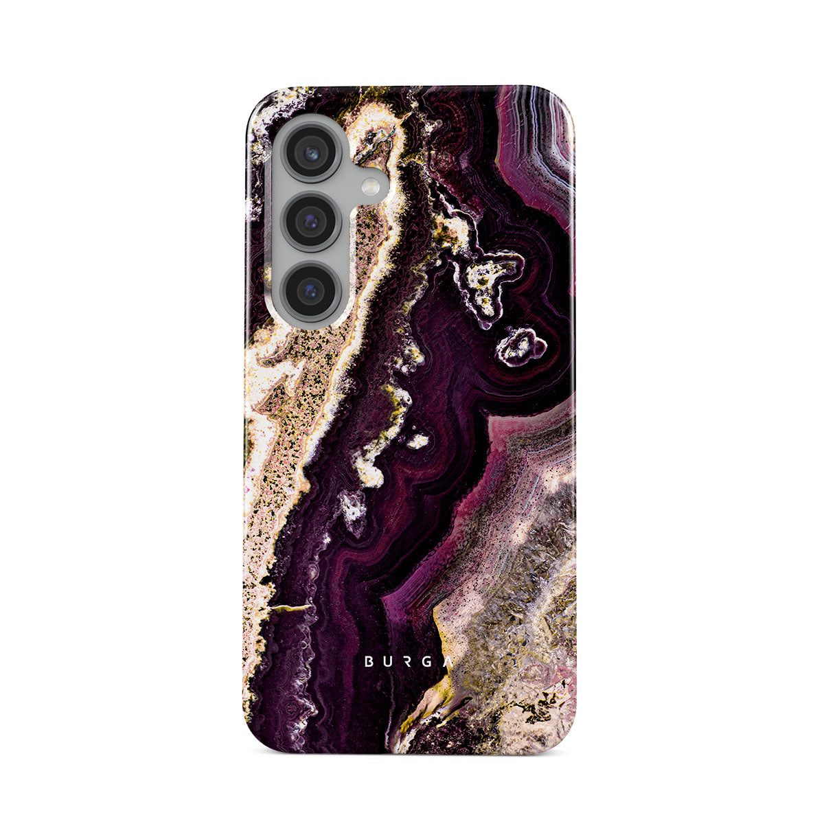 Marble meets geode look in our durable Purple Skies Samsung Galaxy S24 phone case. You can rest sure that our hard-shell purple marble phone case will protect your device from any unexpected falls while adding elegance and luxury to your style.