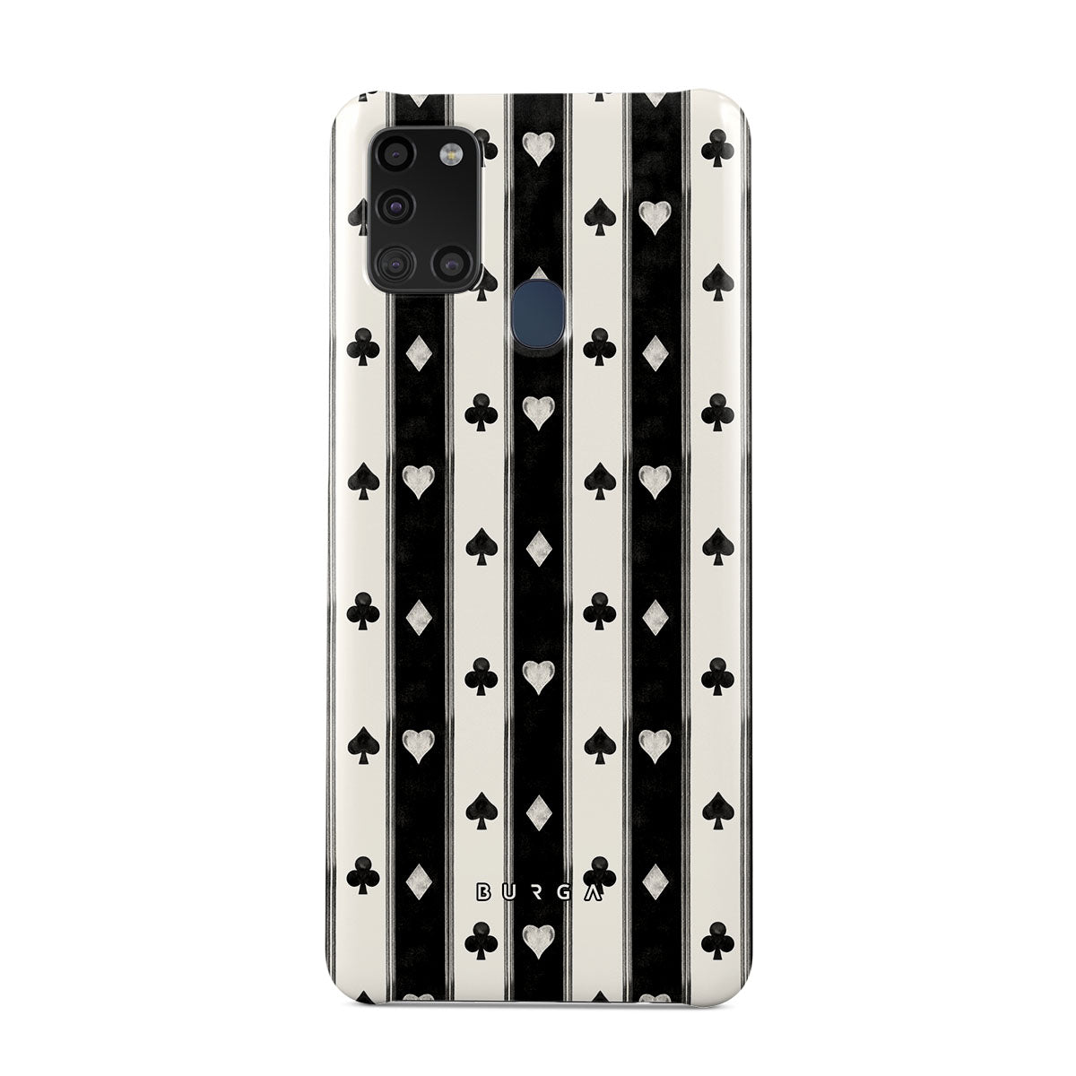 Black and white, power and play. The Queen’s Court Samsung Galaxy A21s 4G phone case design doesn’t ask for permission—it takes what it wants. If you’re not moving pieces, you’re one of them.
