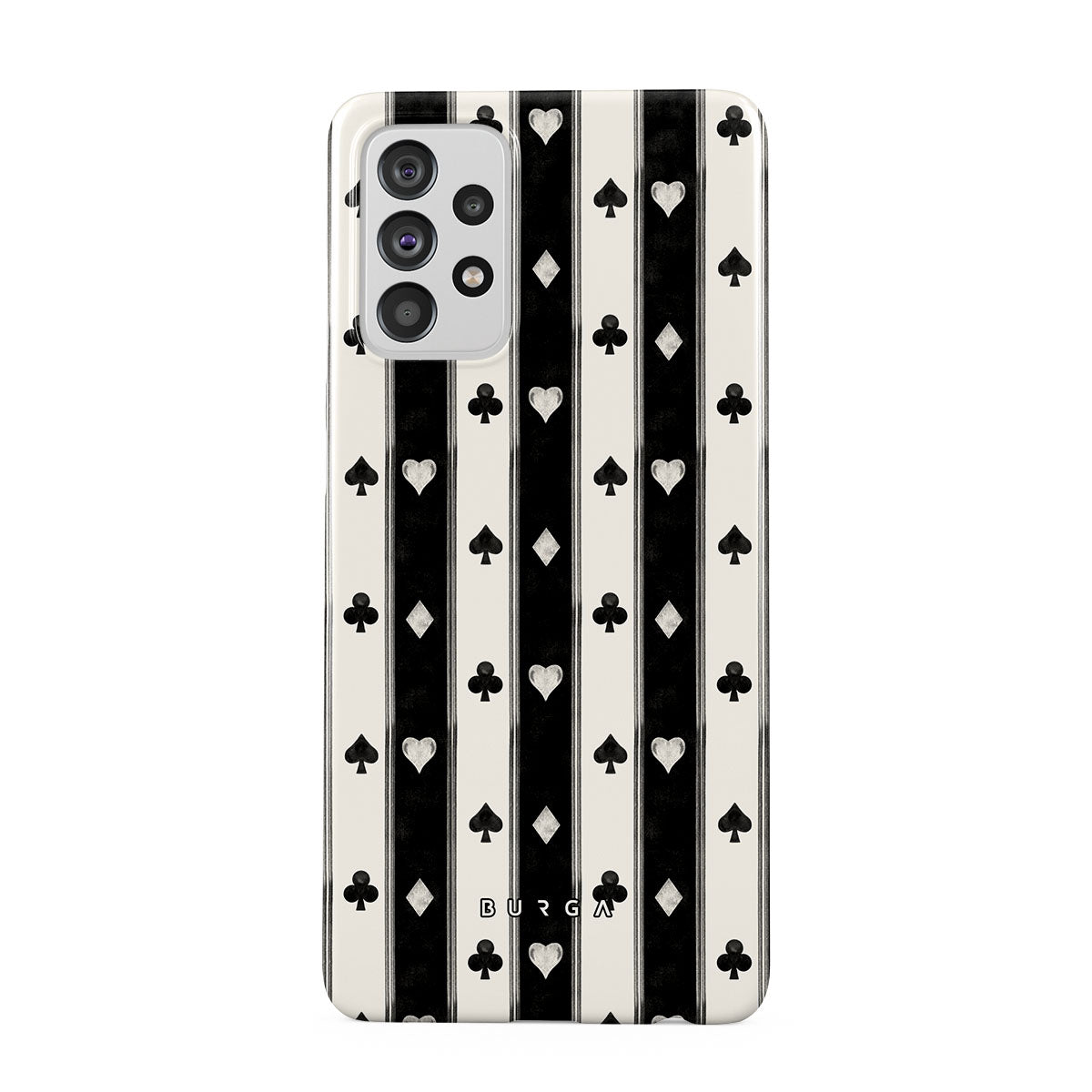 Black and white, power and play. The Queen’s Court Samsung Galaxy A72 4G / 5G phone case design doesn’t ask for permission—it takes what it wants. If you’re not moving pieces, you’re one of them.