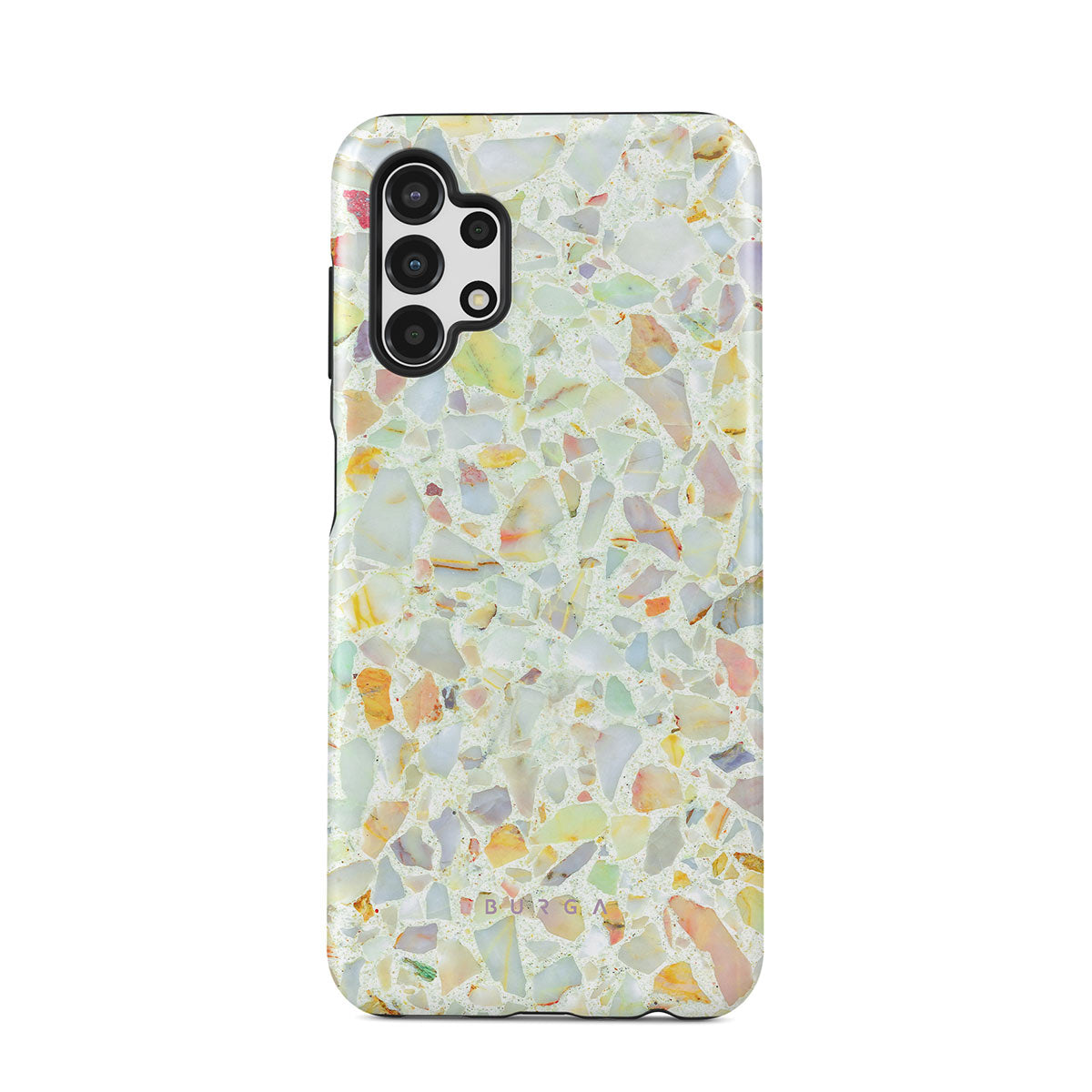 Sun is shining bright, creating rainbows on the path as the light and warm rain just washed the tiles. Walk around barefoot and feel the magic in your steps. Take this summery feeling encased in a cute Samsung Galaxy A13 4G phone case that is as protective as mesmerizing the rainbow can be.