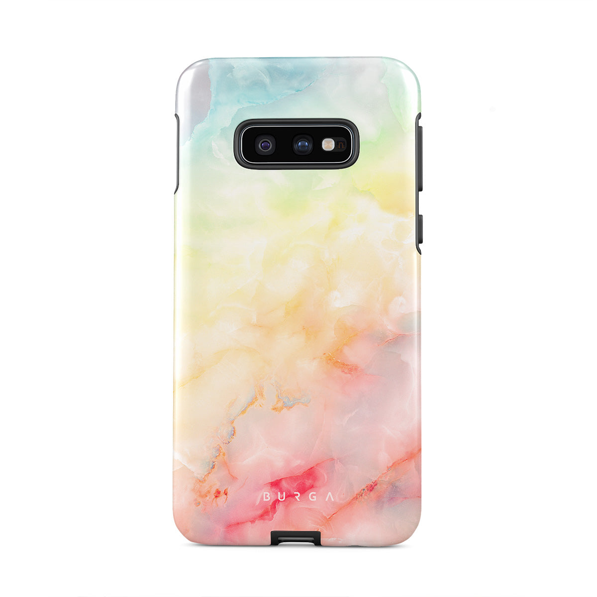 Color your world with our New Flame Samsung Galaxy S10E phone case. Inspired by the rainbow, this case is guaranteed to brighten your style. The dreamy pastel rainbow and the shockproof design of our case will keep your phone safe and sound while looking better than ever.