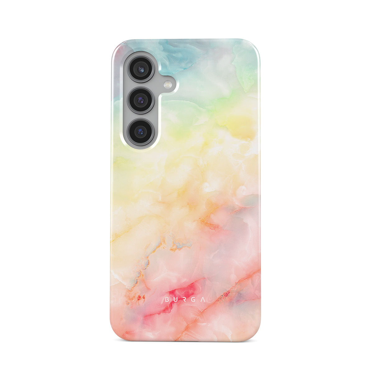 Color your world with our New Flame Samsung Galaxy S24 phone case. Inspired by the rainbow, this case is guaranteed to brighten your style. The dreamy pastel rainbow and the shockproof design of our case will keep your phone safe and sound while looking better than ever.
