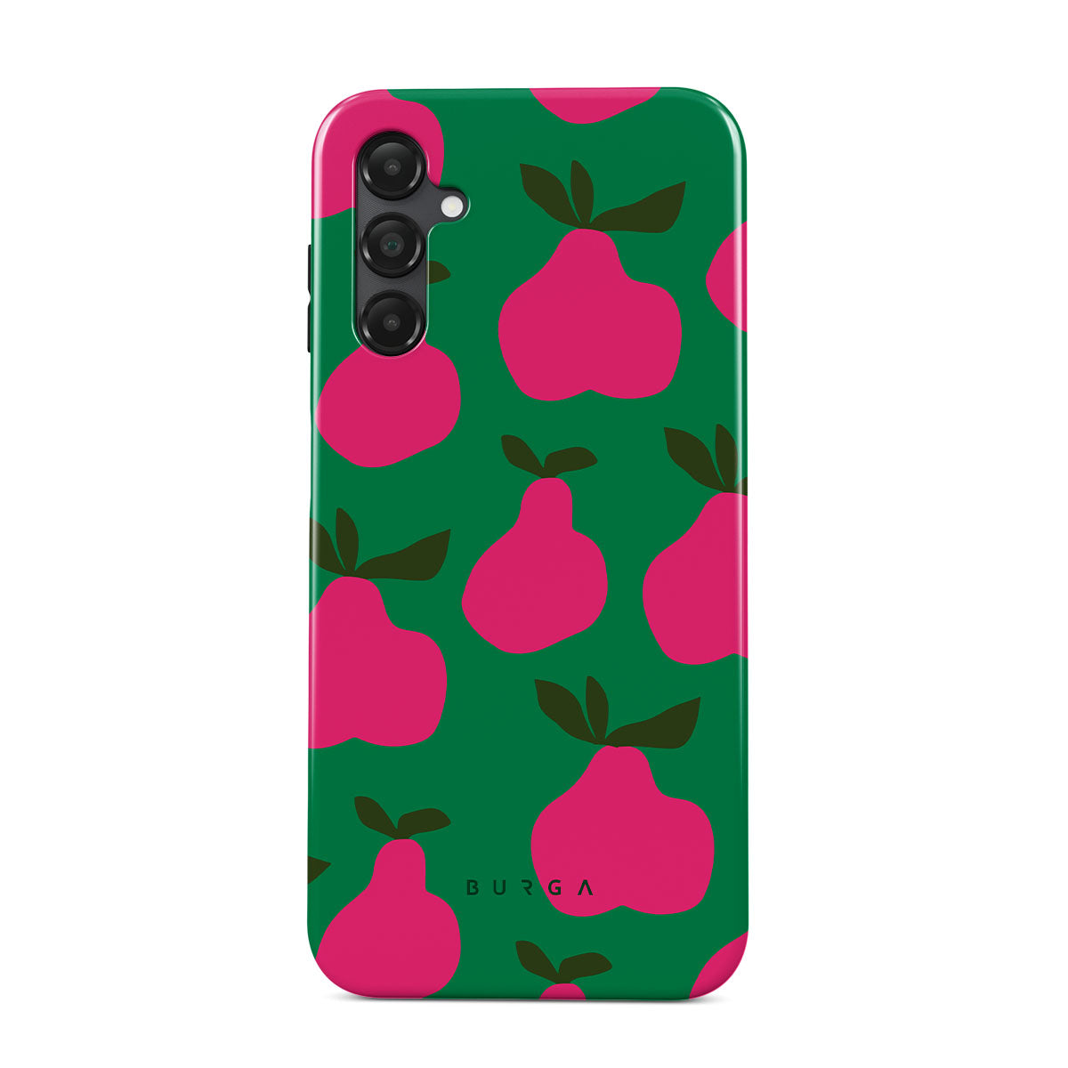 A symphony of refreshing pink pears against a backdrop of lush greenery—Refresco is a sip of summer, a zesty reminder of the sweetness surrounding us. With a lively design, this Samsung Galaxy A25 phone case turns your device into a playful masterpiece, inviting you to embrace the joy and vibrancy of life.