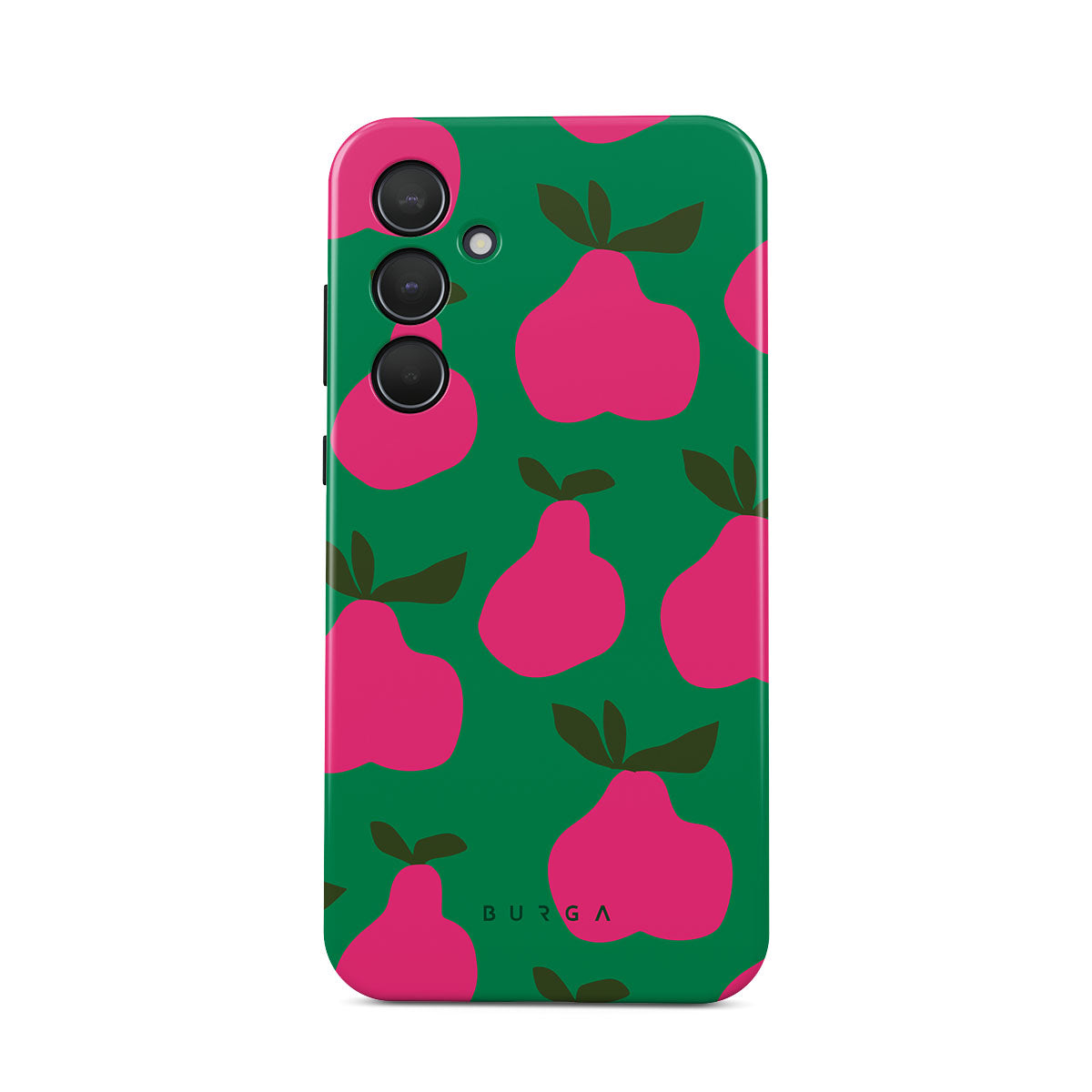 A symphony of refreshing pink pears against a backdrop of lush greenery—Refresco is a sip of summer, a zesty reminder of the sweetness surrounding us. With a lively design, this Samsung Galaxy A35 phone case turns your device into a playful masterpiece, inviting you to embrace the joy and vibrancy of life.
