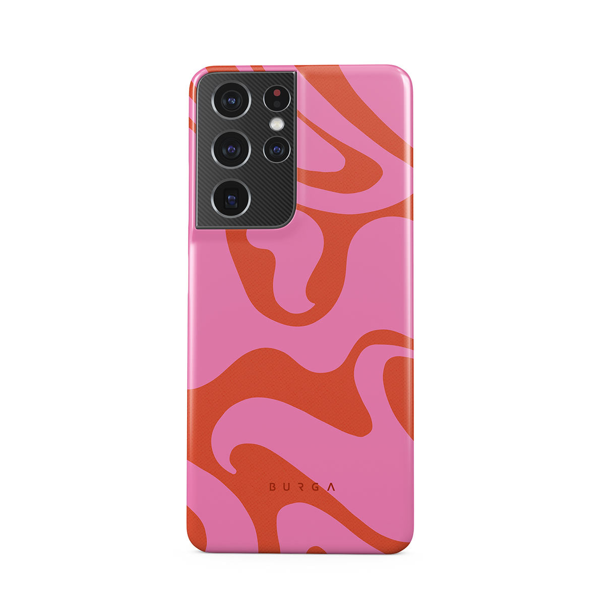 Bold and big take of a liquid swirl can be met in our Ride the Wave Samsung Galaxy S21 Ultra phone case. It will not only turn your device into a beautiful art piece but will also keep it safe and sound while encasing it in a design from a 70s art gallery!