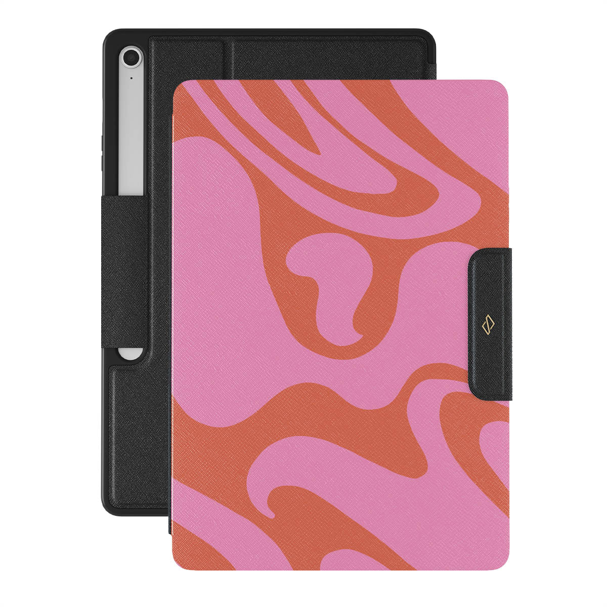 Bold and big take of a liquid swirl can be met in our Ride the Wave Samsung Galaxy Tab S10+ FE folio case. It will not only turn your device into a beautiful art piece but will also keep it safe and sound while encasing it in a design from a 70s art gallery!