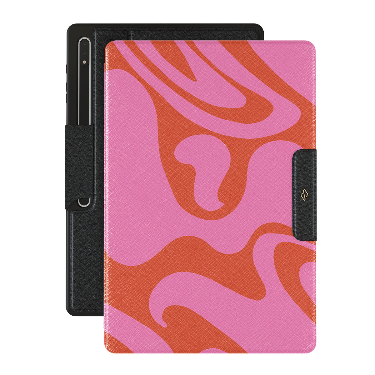 Bold and big take of a liquid swirl can be met in our Ride the Wave Samsung Galaxy Tab S10 Ultra folio case. It will not only turn your device into a beautiful art piece but will also keep it safe and sound while encasing it in a design from a 70s art gallery!