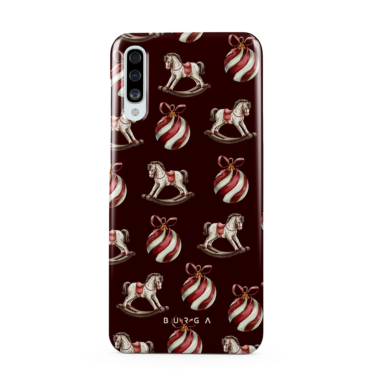 Jingle all the way with this playful Samsung Galaxy A50 phone case design. Featuring rocking horses and candy-striped bells, our Rocking Around design transports you back to childhood moments of decorating the tree and waiting for Santa. It’s the ultimate throwback to vintage Christmas charm.