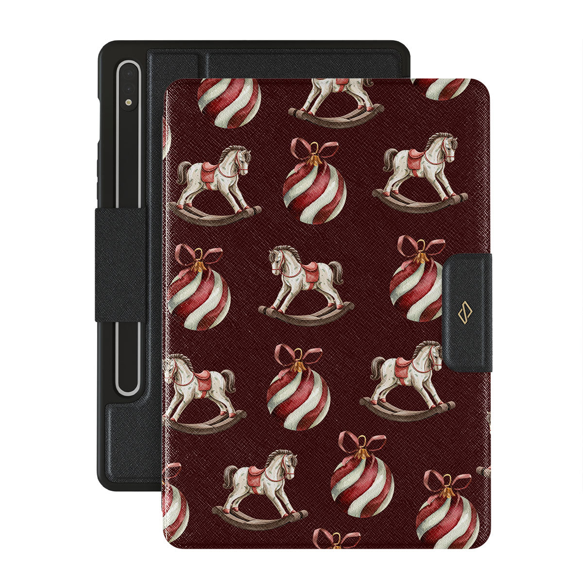 Jingle all the way with this playful Samsung Galaxy Tab S10+ folio case design. Featuring rocking horses and candy-striped bells, our Rocking Around design transports you back to childhood moments of decorating the tree and waiting for Santa. It’s the ultimate throwback to vintage Christmas charm.