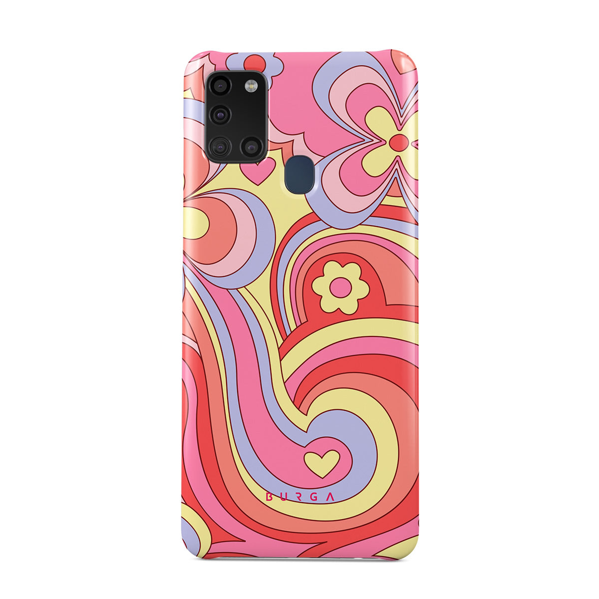 A design embodying a radiant, cheerful life filled with hope and joy. A celebration in hues, a mix of vibrant pink, yellow, and blue swirls. Roller Disco is where fashion meets fun. With beautiful pastels blending into a head-turning style, every day feels like a party. Spin your Samsung Galaxy A21s 4G phone case into the spotlight!