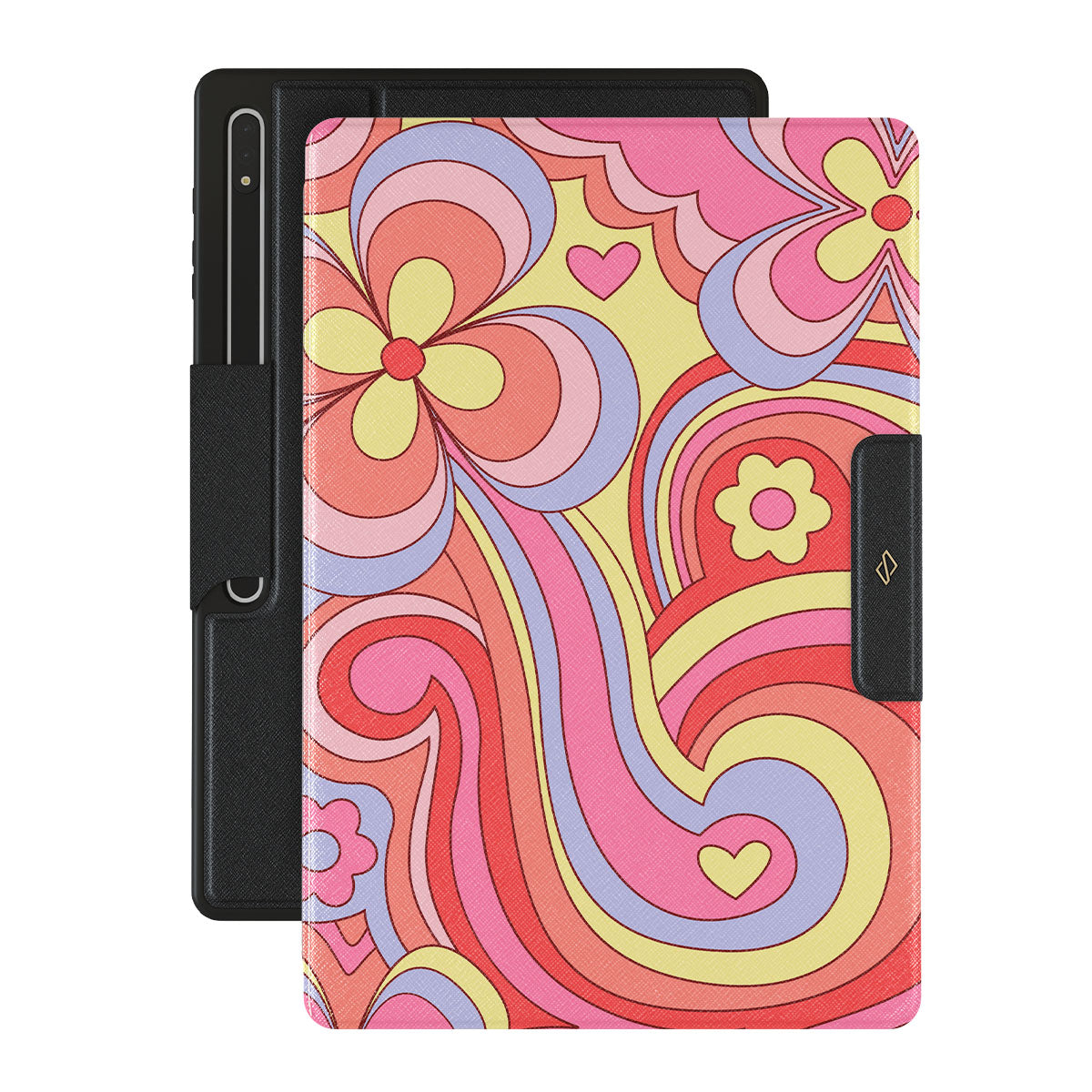 A design embodying a radiant, cheerful life filled with hope and joy. A celebration in hues, a mix of vibrant pink, yellow, and blue swirls. Roller Disco is where fashion meets fun. With beautiful pastels blending into a head-turning style, every day feels like a party. Spin your Samsung Galaxy Tab S9 Ultra folio case into the spotlight!