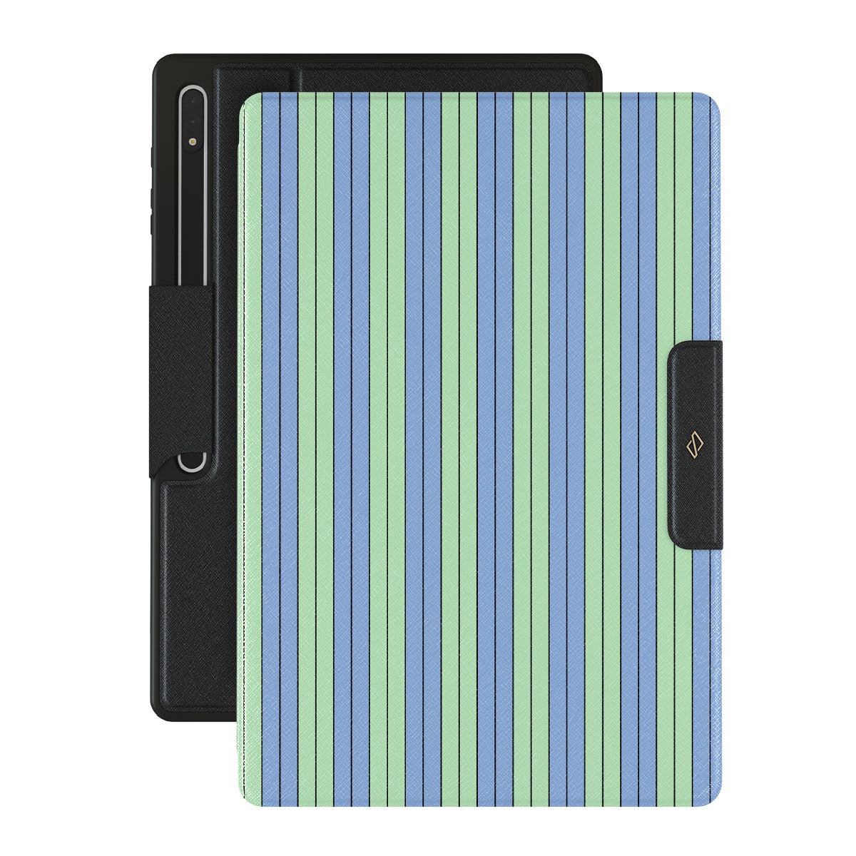 Embrace the effortless chic of Sailaway. This Samsung Galaxy Tab S8 Ultra folio case design lines up a parade of soft, pastel stripes, capturing the laid-back essence of seaside escapades. It's your daily slice of summer fun, wrapped in style.