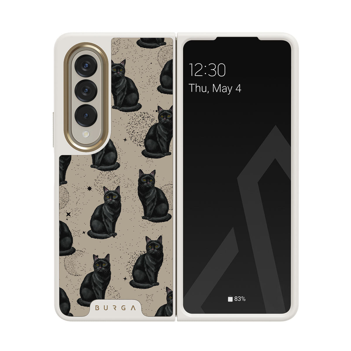 They say black cats are bad luck, but with our Salem Samsung Galaxy Z Fold 4 phone case design, fortune follows wherever these little guardians go. These cats aren't just symbols; they’re your protectors in the mysterious world of style. Superstitious or not, this one’s got your back.